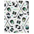 Formát: A4 - Rozměr: 210 x 293 mm - Barva bloku: bílá - Záložka: bílá - Papír: čtverečkovaný perforací - Počet stran: 144 - Vazba: šitá V8 (tkaná niť) - Materiál vnější: pěnová výplň desky potažená hladkou koženkou s natištěnou grafikou - Materiál vnitřní: černý samet - - Součástí notesu je poutko na propisku a kovová propiska.