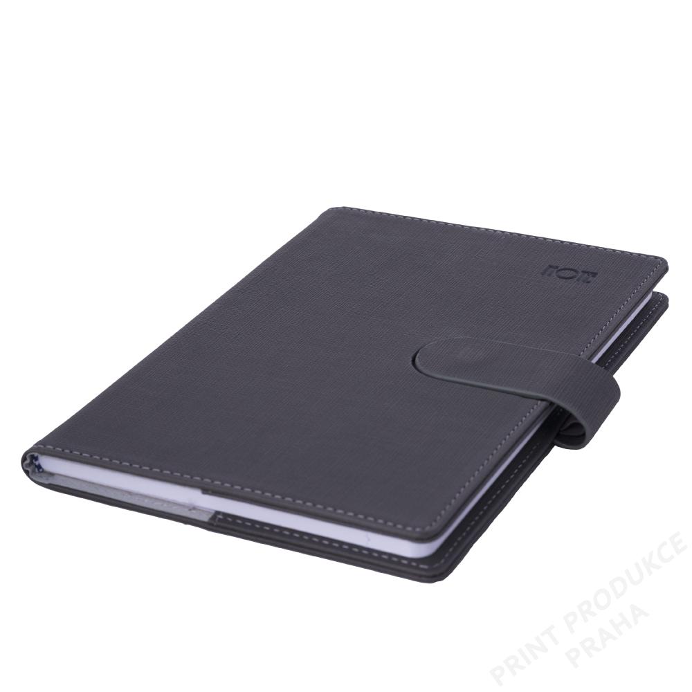 Formát: A5 - Rozměr: 143 x 205 mm - Potahový materiál: vzorovaná matná koženka - Barva bloku: bílá - Záložka: bílá - Papír: tečkovaný s perforací - Počet stran: 144 - Vazba: šitá V8 (tkaná niť) - Součástí notesu je poutko na propisku a magnetické zavírání.