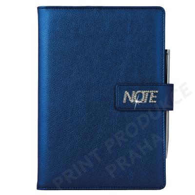 Formát: A5 - Rozměr: 143 x 205 mm - Potahový materiál: koženka - Vazba: šitá V8 (tkaná niť) - Barva bloku: bílá - Papír: tečkovaný s perforací - Záložka: bílá - Počet stran: 144 - - Šperk Note je vyroben z niklu a v něm jsou vsazeny krystalky. - Součástí je tenké kovové pero a magnetické zavírání. - Notes je balen v dárkové krabičce vystlané saténem.