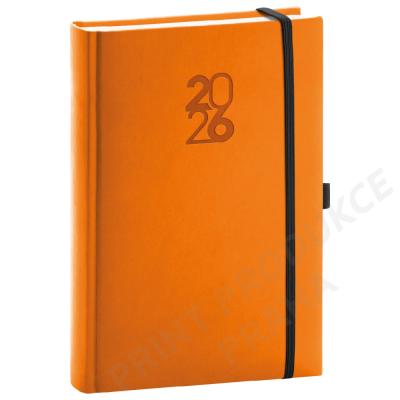 Rozměr: 15 x 21 cm - Formát: A5 - Kalendárium: 6jazyčné denní (CZ, SK, EN, DE, HU, RU) - Počet stran: 352 stran - Potahový materiál: hladká matná koženka - Vazba: tuhá knižní - Barva bloku: bílá - - Diář obsahuje: místo pro osobní údaje, měsíční plánování 2026 a 2027, - roční plánování 2026 a 2027, pracovní plánovací kalendář, mapa ČR a SK, - svátky ČR/ SK + mezinárodní svátky, rozšířený seznam českých jmen. - - Součástí je ražba roku, gumička na zavření a poutko na pero. - Vhodný pro ražbu, ražbu přes folii, barevnou ražbu a potisk.