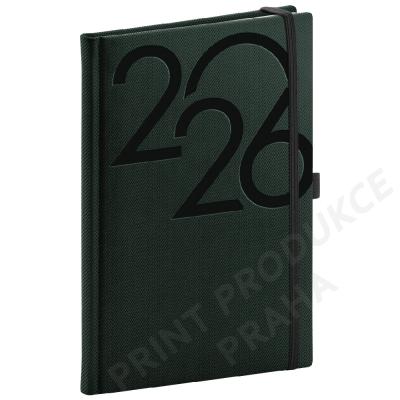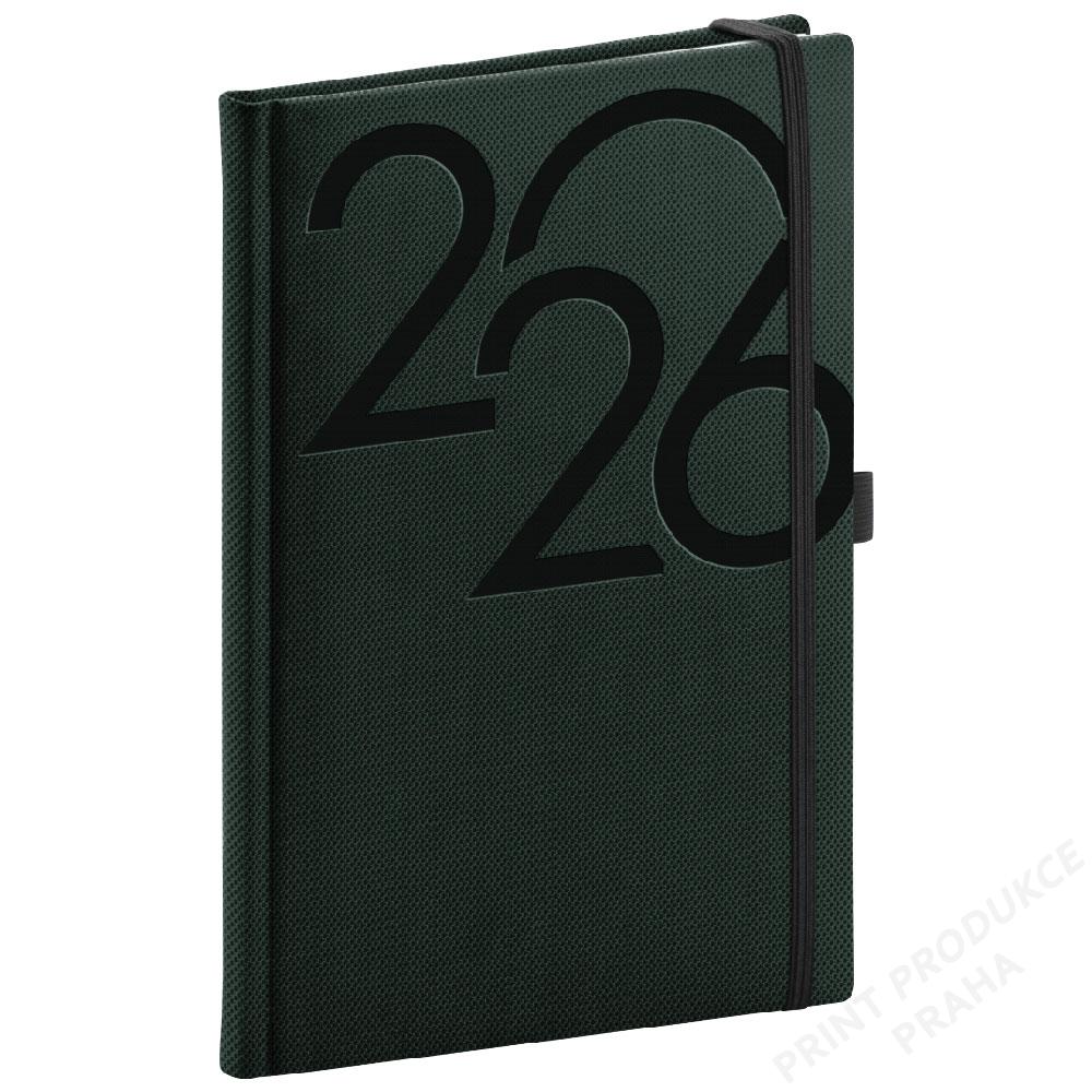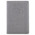 Rozměr: 15 x 21 cm - Formát: A5 - Kalendárium: 6jazyčné týdenní (CZ, SK, EN, DE, HU, RU) - Počet stran: 144 stran - Potahový materiál: jemně strukturovaná koženka - Vazba: tuhá knižní - Barva bloku: bílá - - Diář obsahuje: místo pro osobní údaje, měsíční plánování 2026 a 2027, - roční plánování 2026 a 2027, pracovní plánovací kalendář, mapa ČR a SK, - svátky ČR/ SK + mezinárodní svátky, rozšířený seznam českých jmen. - - Součástí je ražba roku, gumička na zavření a poutko na pero. - Vhodný pro ražbu, ražbu přes folii a barevnou ražbu.