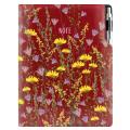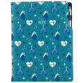 Formát: A4 - Rozměr: 210 x 293 mm - Barva bloku: bílá - Záložka: bílá - Papír: čtverečkovaný perforací - Počet stran: 144 - Vazba: šitá V8 (tkaná niť) - Materiál vnější: pěnová výplň desky potažená hladkou koženkou s natištěnou grafikou - Materiál vnitřní: černý samet - - Součástí notesu je poutko na propisku a kovová propiska.