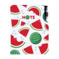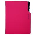 Formát: A5 - Rozměr: 143 x 205 mm - Potahový materiál: matná koženka - Barva bloku: bílá - Záložka: bílá - Papír: čtverečkovaný s perforací - Počet stran: 144 - Vazba: šitá V8 (tkaná niť) - Součástí notesu je propiska a gumička na zavírání.