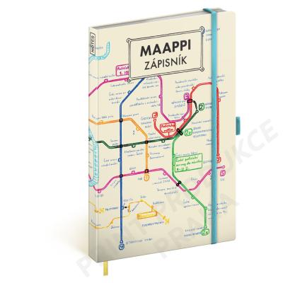 Rozměr: 13 x 21 cm - Formát: A5 - Počet stran: 172 - Papír: linkovaný krémový - Výška řádku: 8 mm - Vazba: tuhá knižní s uzavíráním na gumičku + poutko na tužku - Součástí je vnitřní papírová kapsa na navštívenky.