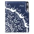 Formát: A5 - Rozměr: 143 x 206 mm - Barva bloku: bílá - Záložka: bílá - Papír: nelinkovaný s perforací - Počet stran: 144 - Vazba: šitá V8 (tkaná niť) - Materiál vnější: pěnová výplň desky potažená hladkou koženkou s natištěnou grafikou - Materiál vnitřní: černý samet - - Součástí notesu je poutko na propisku a kovová propiska.