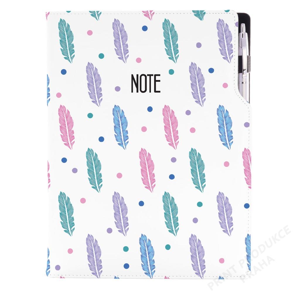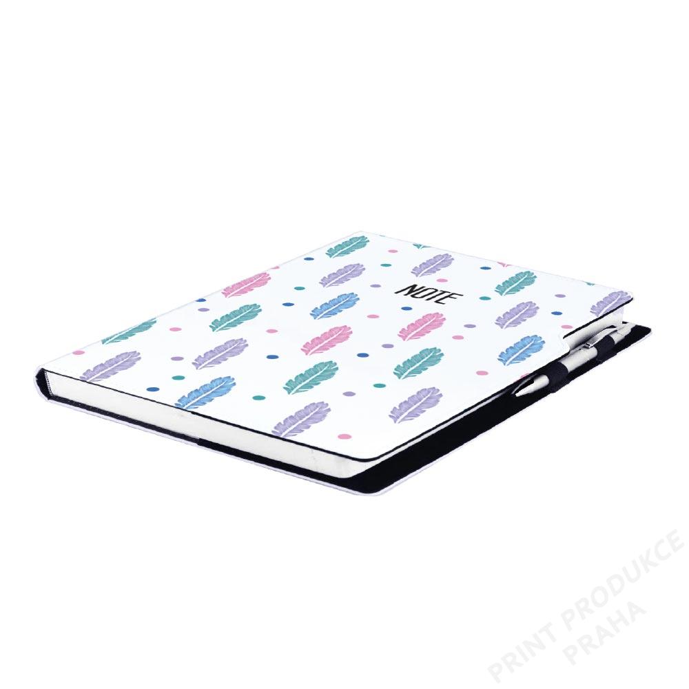 Formát: A4 - Rozměr: 210 x 293 mm - Barva bloku: bílá - Záložka: bílá - Papír: tečkovaný s perforací - Počet stran: 144 - Vazba: šitá V8 (tkaná niť) - Materiál vnější: pěnová výplň desky potažená hladkou koženkou s natištěnou grafikou - Materiál vnitřní: černý samet - - Součástí notesu je poutko na propisku a kovová propiska.
