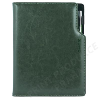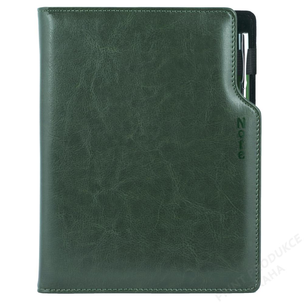 Formát: A5 - Rozměr: 143 x 205 mm - Potahový materiál: lesklá hladká koženka - Vnitřní materiál: černý samet - Barva bloku: bílá - Záložka: bílá - Papír: tečkovaný s perforací - Počet stran: 144 - Vazba: šitá V8 (tkaná niť) - Součástí notesu je propiska