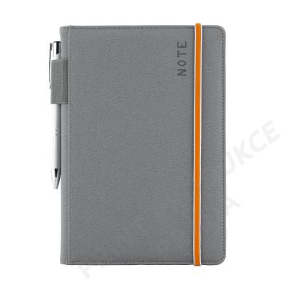 Formát: A5 - Rozměr: 143 x 205 mm - Potahový materiál: matná koženka - Barva bloku: bílá - Záložka: bílá - Papír: tečkovaný s perforací - Počet stran: 144 - Vazba: šitá V8 (tkaná niť) - Součástí notesu je propiska a gumička na zavírání.