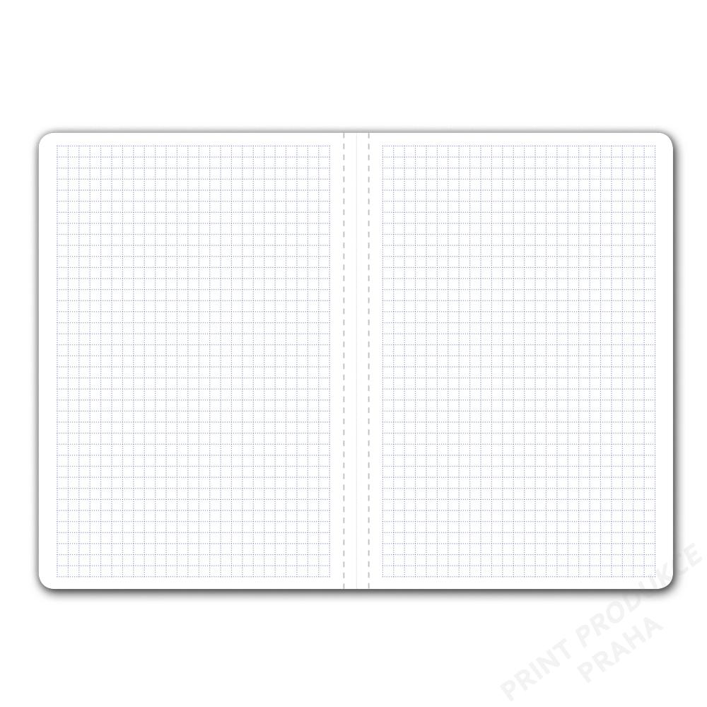 Formát: B6 - Rozměr: 120 x 165 mm - Barva bloku: bílá - Záložka: bílá - Papír: čtverečkovaný perforací - Počet stran: 144 - Vazba: šitá V8 (tkaná niť) - Materiál vnější: pěnová výplň desky potažená hladkou koženkou s natištěnou grafikou - Materiál vnitřní: černý samet - - Součástí notesu je poutko na propisku a kovová propiska.