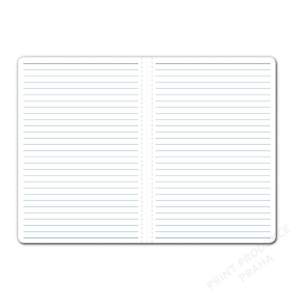 Součástí notesu je poutko na propisku a kovová propiska.