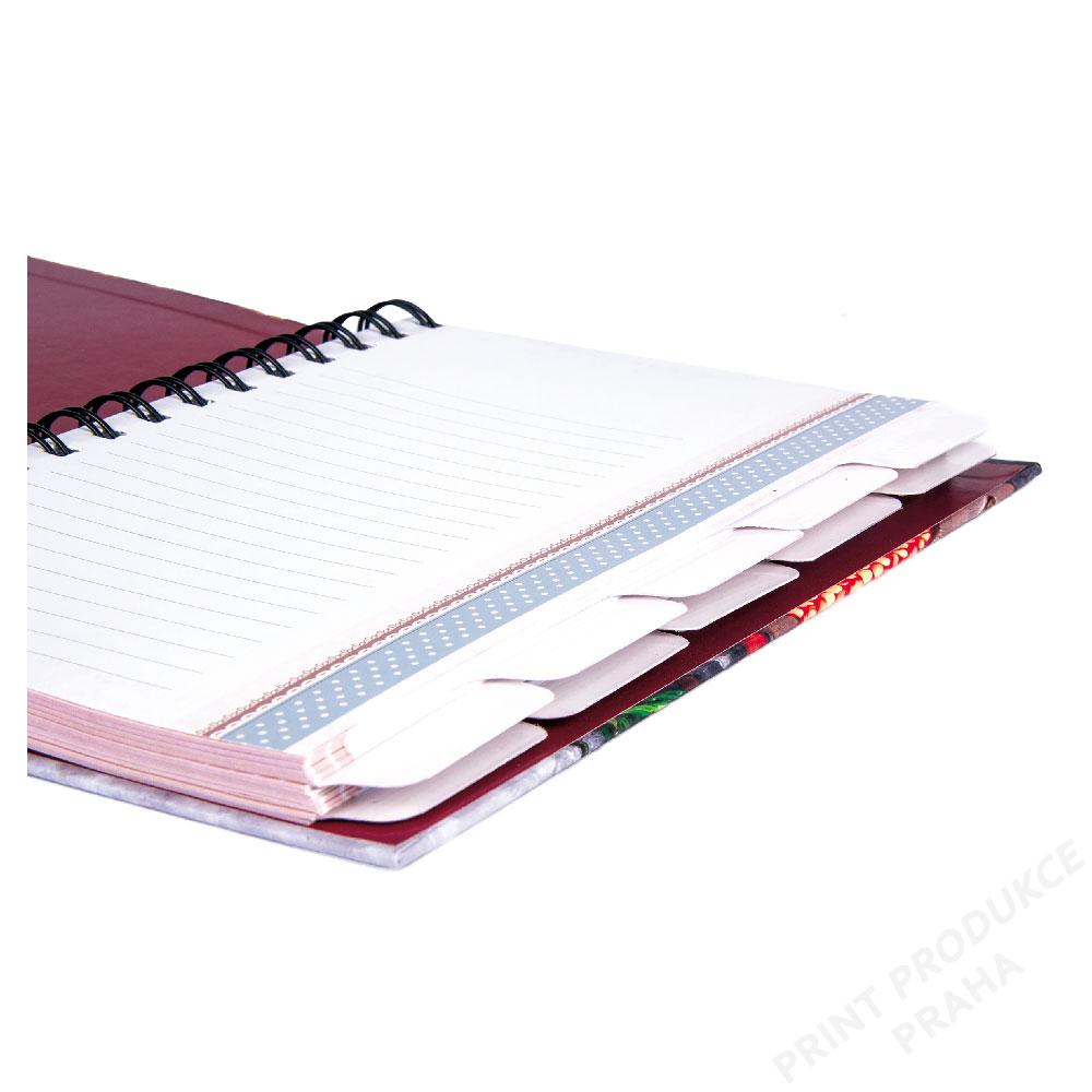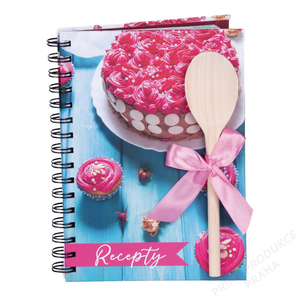 Papír: linkovaný - Barva bloku: bílá - Vazba: kroužková vazba, pevné desky, mašlí připrevněná vařečka