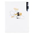 Formát: B5 - Rozměr: 170 x 240 mm - Barva bloku: bílá - Záložka: bílá - Papír: linkovaný perforací - Počet stran: 144 - Vazba: šitá V8 (tkaná niť) - Materiál vnější: pěnová výplň desky potažená hladkou koženkou - s natištěnou grafikou - Materiál vnitřní: černý samet - - Součástí notesu je poutko na propisku a kovová propiska.