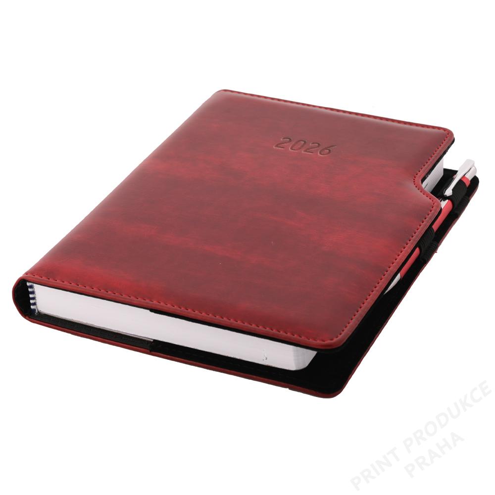 Diář GEP s propiskou denní A5 2026 slovenský - bordó žíhaná