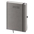Blok vkládaný do desek diáře - Rozsah: 354 stran - Vazba: šitá V8 (tkaná nit) - Kalendárium: denní slovenské jmenné - Jazykové mutace: SK, CZ, EN, DE, RU - Barva bloku: bílá - Barva písma: modrá a červená - Diář obsahuje: kulaté odtrhávací rožky, bílou záložku, - poutko na propisku a gumičku za zavírání - Materiál: pevné desky potaženy vzorovanou matnou koženkou - - Obsah kalendária: znamení zvěrokruhu, přehledný kalendář, - plánovací kalendář 2026, roční plánovací kalendář SK a CZ, - přehled přiznání a plateb daní SK a CZ, časová pásma, - mezinárodní tel. spojení, SK křestní jména, poznámky, - státní a církevní svátky ve světě, vzdálenosti v km EU/SK/CZ, - plánovací kalendář 2027, mapy - SK, ČR, Praha, Bratislava. - - Součástí je barevná ražba letopočtu. - Diář je vhodný pro sleporažbu a barevnou ražbu.