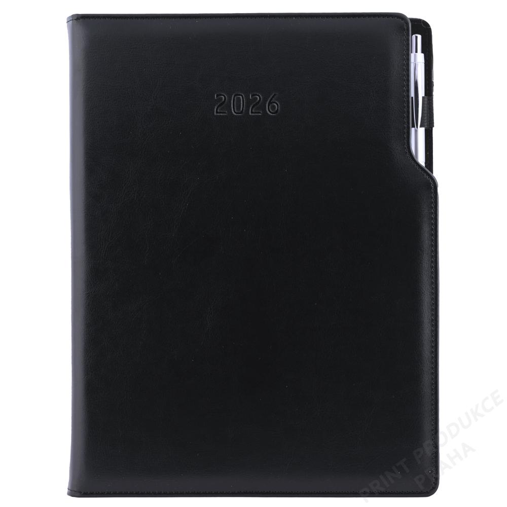 Diář GEP s propiskou týdenní A4 2026 - černá/černý vnitřek