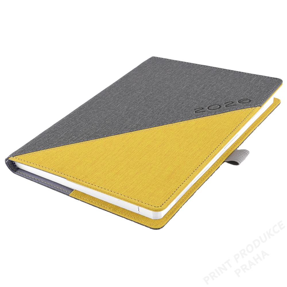 Rozsah: 142 stran - Vazba: šitá V8 (tkaná nit) - Kalendárium: týdenní české jmenné - Jazykové mutace: CZ, SK, EN, DE, RU - Barva bloku: bílá - Barva písma: modrá a červená - Potahový materiál: vzorovaná matná koženka - Diář obsahuje: kulaté odtrhávací rožky, - bílou záložku a poutko na propisku - - Obsah kalendária: znamení zvěrokruhu, přehledný kalendář, - plánovací kalendář 2026, roční plánovací kalendář CZ a SK, - přehled přiznání a plateb daní CZ a SK, poznámky, - mezinárodní tel. spojení, CZ křestní jména, časová pásma, - státní a církevní svátky ve světě, vzdálenosti v km EU/CZ/SK, - plánovací kalendář 2027, mapy - ČR, SK, Praha, Bratislava. - - Diář je vhodný pro sleporažbu a barevnou ražbu.