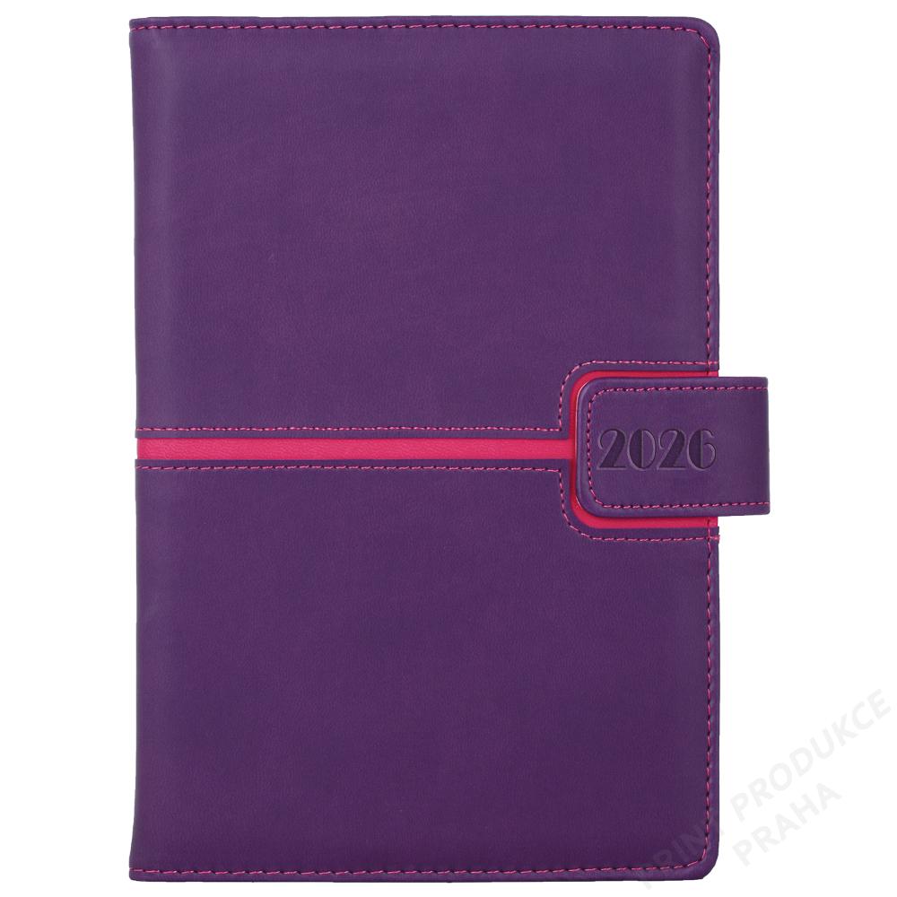Diář MAGNETIC týdenní A5 2026 český - fialová/růžová
