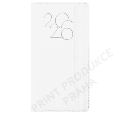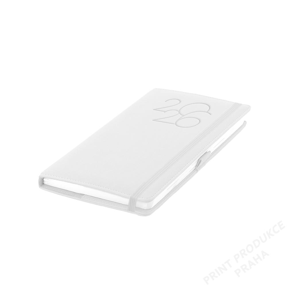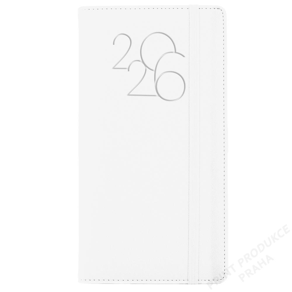 Blok vkládaný do desek diáře - Rozsah: 140 stran - Vazba: šitá V8 (tkaná nit) - Kalendárium: týdenní slovenské jmenné - Jazykové mutace: SK, CZ, EN, DE, RU - Barva bloku: bílá - Barva písma: modrá a červená - Potahový materiál: matná koženka - Diář obsahuje: kulaté odtrhávací rožky, - bílou záložku, poutko na propisku a gumičku na zavírání - - Obsah kalendária: znamení zvěrokruhu, přehledný kalendář, - plánovací kalendář 2026, roční plánovací kalendář SK a CZ, - přehled přiznání a plateb daní SK a CZ, mezinárodní tel. spojení, - státní a církevní svátky ve světě, SK křestní jména, - vzdálenosti v km EU/SK/CZ, plánovací kalendář 2027, - poznámky, časová pásma - - Diář je vhodný pro sleporažbu, barevnou ražbu a potisk.