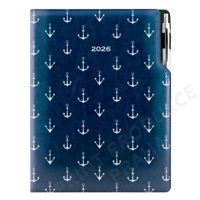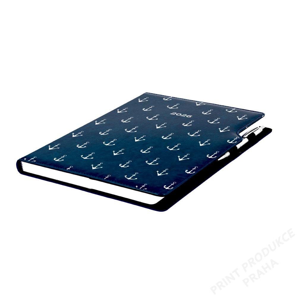 Diář DESIGN týdenní A4 2026 - modrá - Námořník - kotvy