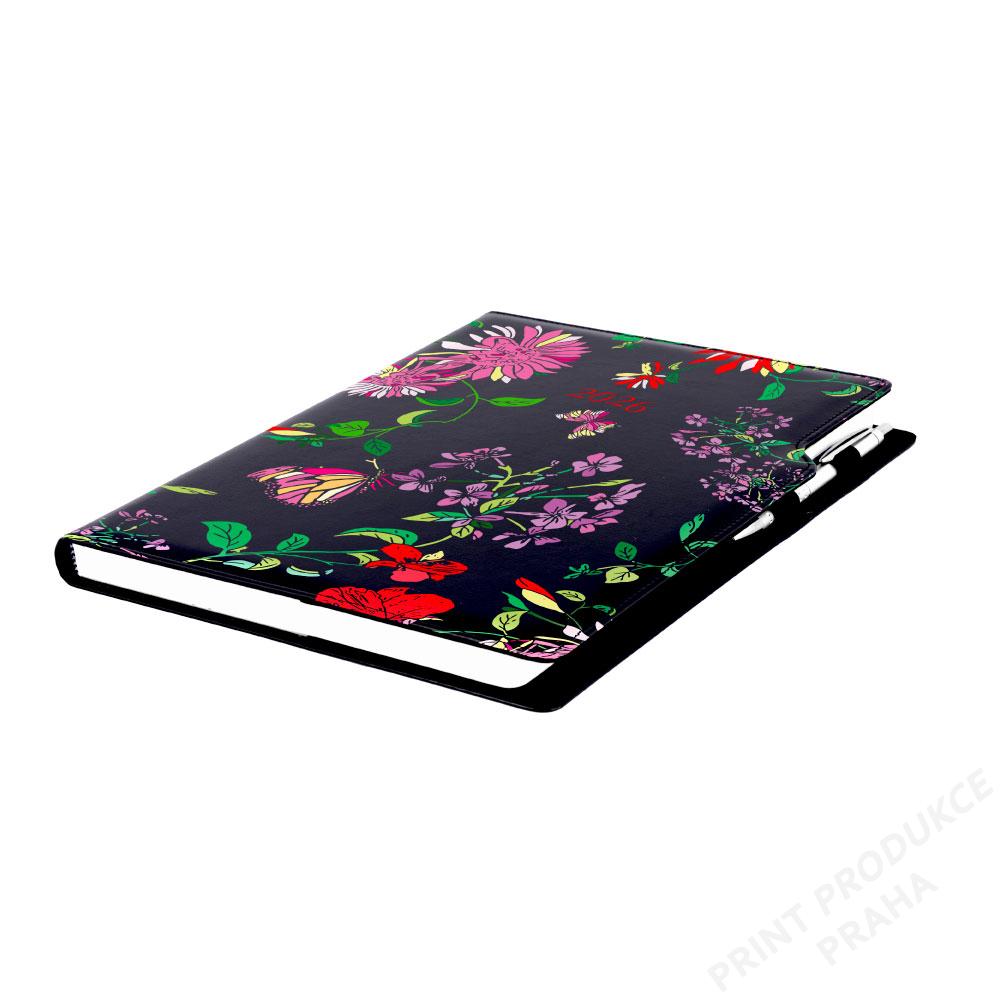 Diář DESIGN týdenní A4 2026 - černá - Květy