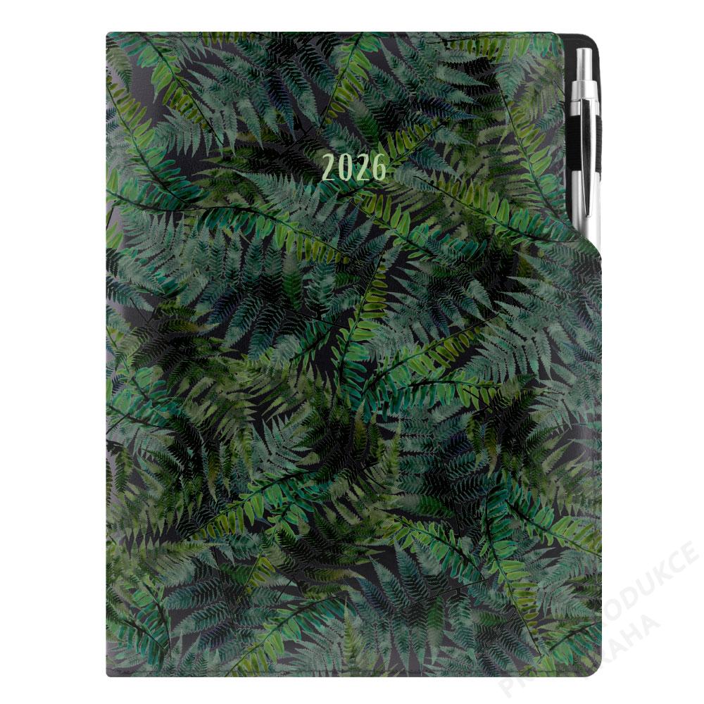 Formát: A4 - Rozměr bloku: 210 x 293 mm - Rozsah: 144 stran - Vazba: šitá V8 (tkaná nit) - Kalendárium: týdenní české a slovenské - Jazykové mutace: CZ, SK, EN, DE, RU - Barva bloku: bílá - Barva písma: modrá a červená - Diář obsahuje: kulaté odtrhávací rožky, bílou záložku a propisku - Materiál vnější: pěnová výplň desky potažená hladkou koženkou s natištěnou grafikou - Materiál vnitřní: černý samet - - Obsah kalendária: znamení zvěrokruhu, přehledný kalendář, plánovací kalendář 2026, - roční plánovací kalendář CZ a SK, přehled přiznání a plateb daní CZ a SK, - mezinárodní tel. spojení, CZ/SK křestní jména, časová pásma, - státní a církevní svátky ve světě, vzdálenosti v km EU/CZ/SK, - plánovací kalendář 2027, poznámky, mapy - ČR, SK, Praha, Bratislava. - - -