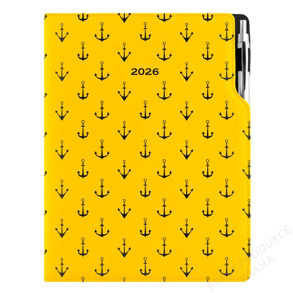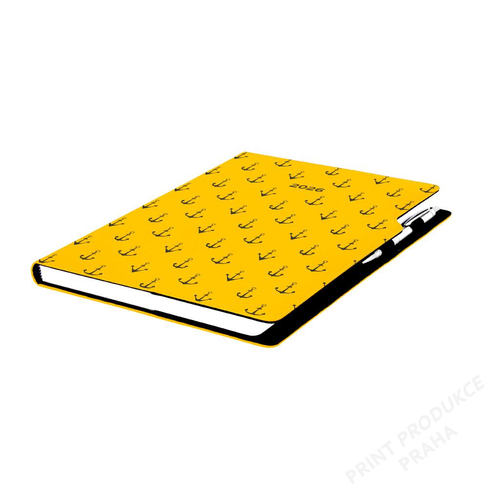 Diář DESIGN týdenní A4 2026 - žlutá - Námořník - kotvy
