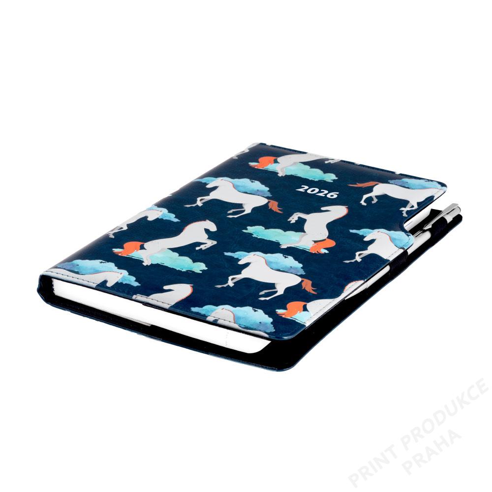 Diář DESIGN týdenní B5 2026 - modrá - Koně