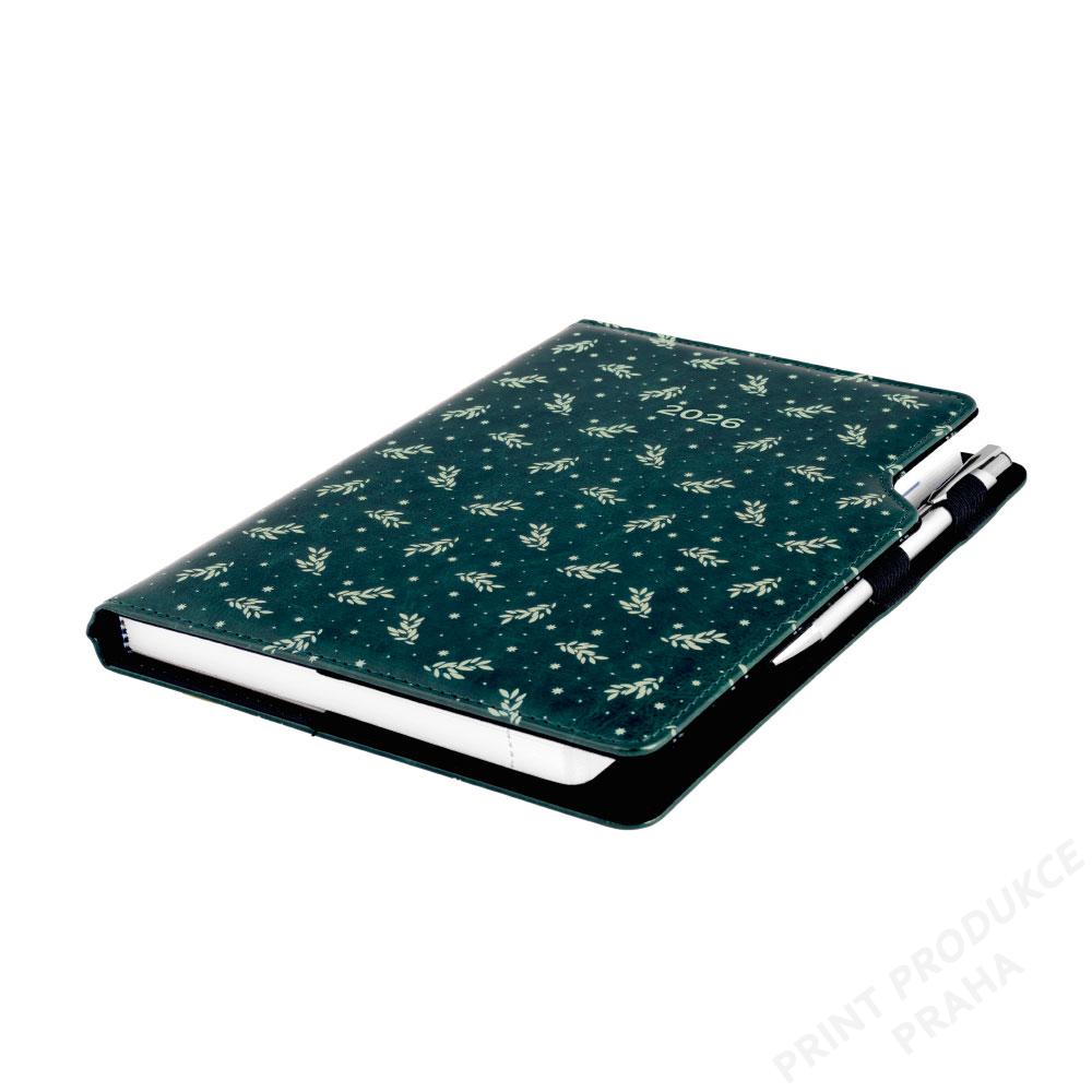 Diář DESIGN týdenní B5 2026 - zelená - Větvičky