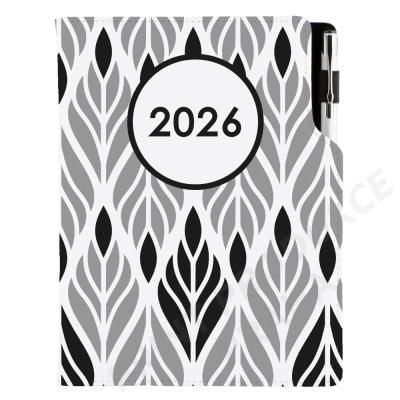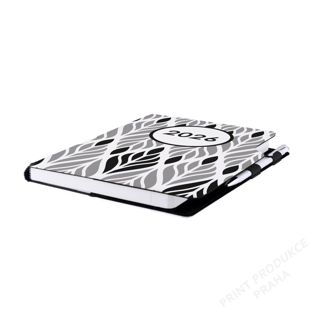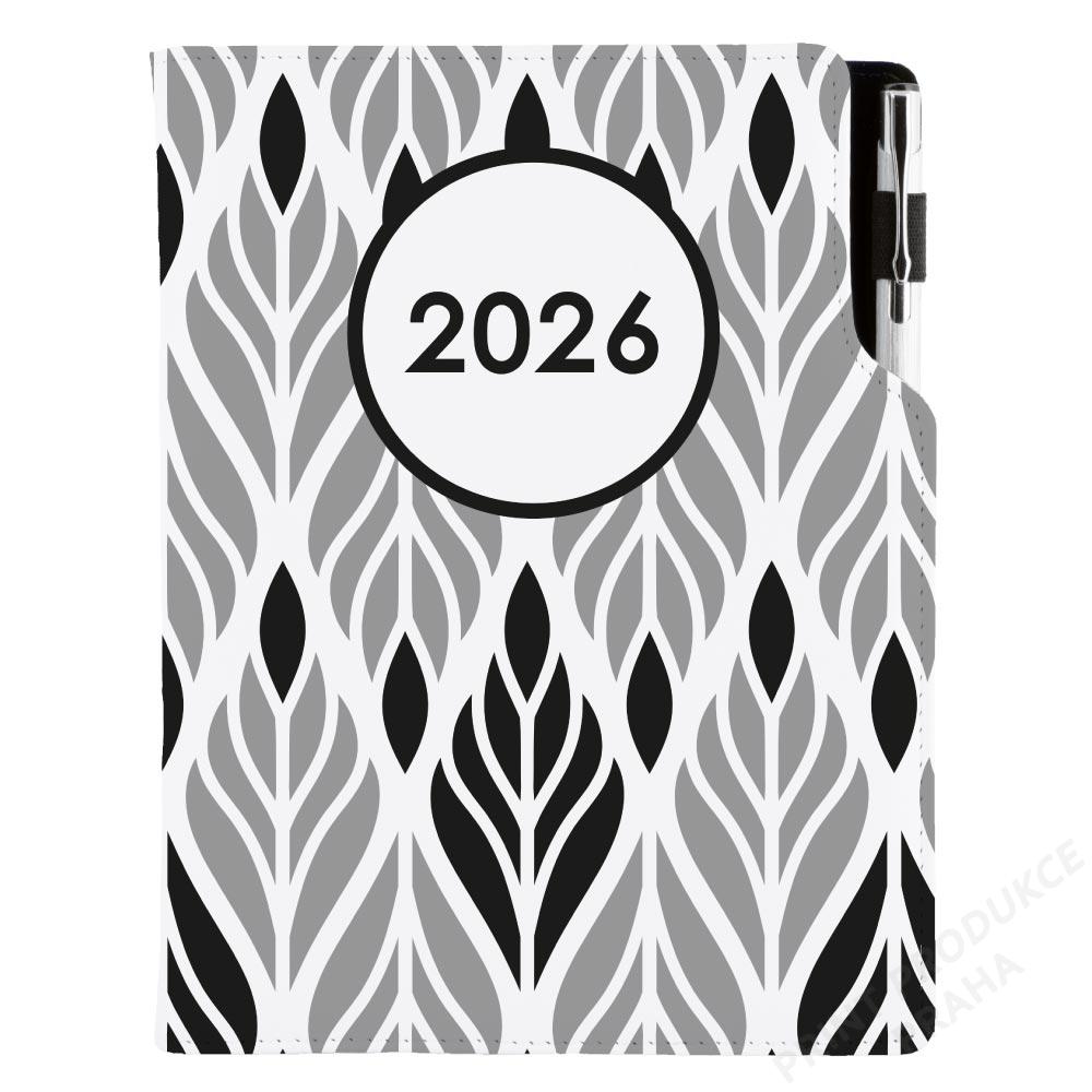 Formát: B5 - Rozměr bloku: 170 x 240 mm (Blok vkládaný do desek diáře) - Rozsah: 144 stran - Vazba: šitá V8 (tkaná nit) - Kalendárium: týdenní české a slovenské jmenné - Jazykové mutace: CZ, SK, EN, DE, RU - Barva bloku: bílá - Barva písma: modrá a červená - Diář obsahuje: kulaté odtrhávací rožky, bílou záložku a propisku - Materiál vnější: pěnová výplň desky potažená hladkou koženkou s natištěnou grafikou - Materiál vnitřní: černý samet - - Obsah kalendária: znamení zvěrokruhu, přehledný kalendář, plánovací kalendář 2026, - roční plánovací kalendář CZ a SK, přehled přiznání a plateb daní CZ a SK, - mezinárodní tel. spojení, CZ/SK křestní jména, časová pásma, - státní a církevní svátky ve světě, vzdálenosti v km EU/CZ/SK, - plánovací kalendář 2027, poznámky, mapy - ČR, SK, Praha, Bratislava. - - -