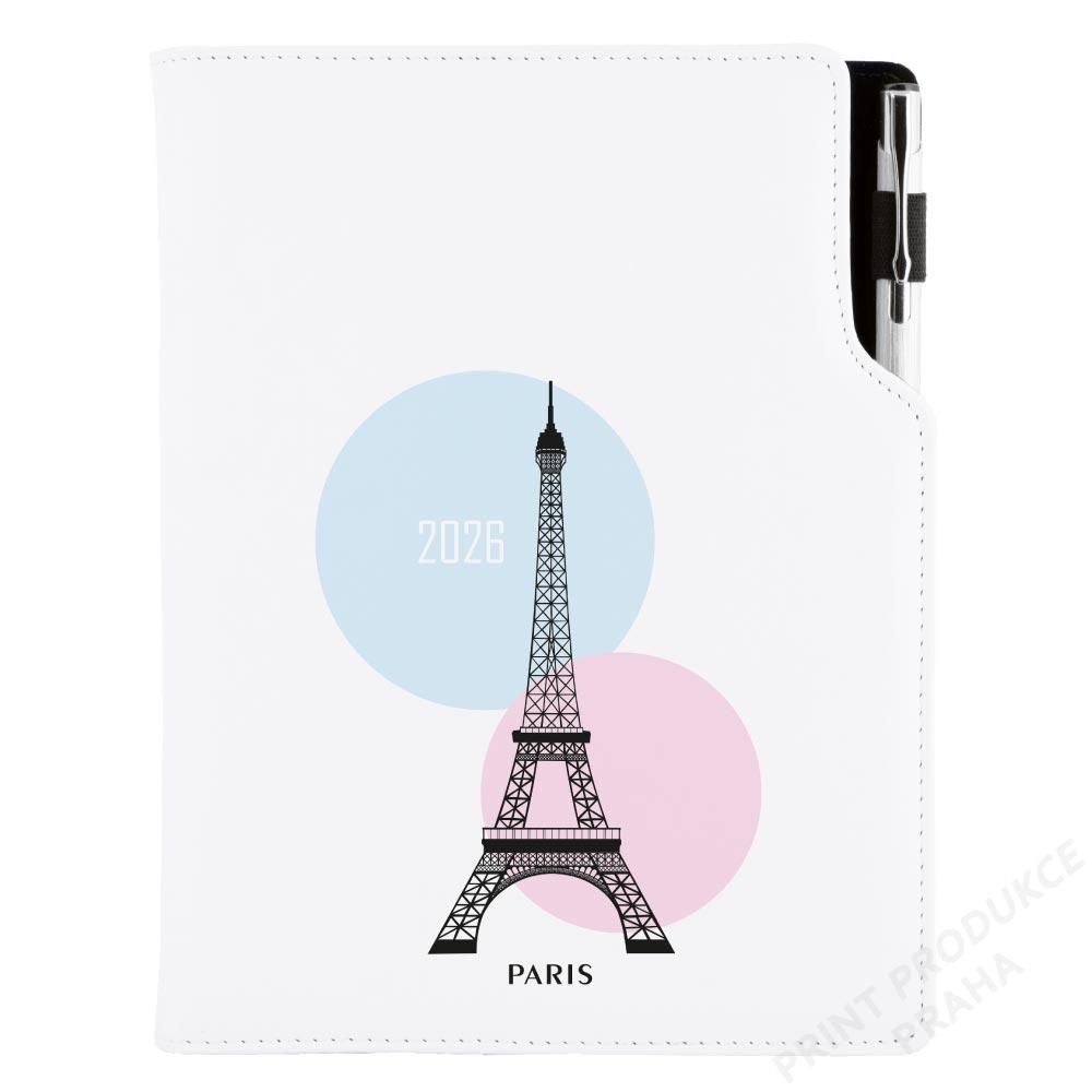 Formát: B5 - Rozměr bloku: 170 x 240 mm (Blok vkládaný do desek diáře) - Rozsah: 144 stran - Vazba: šitá V8 (tkaná nit) - Kalendárium: týdenní české a slovenské jmenné - Jazykové mutace: CZ, SK, EN, DE, RU - Barva bloku: bílá - Barva písma: modrá a červená - Diář obsahuje: kulaté odtrhávací rožky, bílou záložku a propisku - Materiál vnější: pěnová výplň desky potažená hladkou koženkou s natištěnou grafikou - Materiál vnitřní: černý samet - - Obsah kalendária: znamení zvěrokruhu, přehledný kalendář, plánovací kalendář 2026, - roční plánovací kalendář CZ a SK, přehled přiznání a plateb daní CZ a SK, - mezinárodní tel. spojení, CZ/SK křestní jména, časová pásma, - státní a církevní svátky ve světě, vzdálenosti v km EU/CZ/SK, - plánovací kalendář 2027, poznámky, mapy - ČR, SK, Praha, Bratislava. - - -