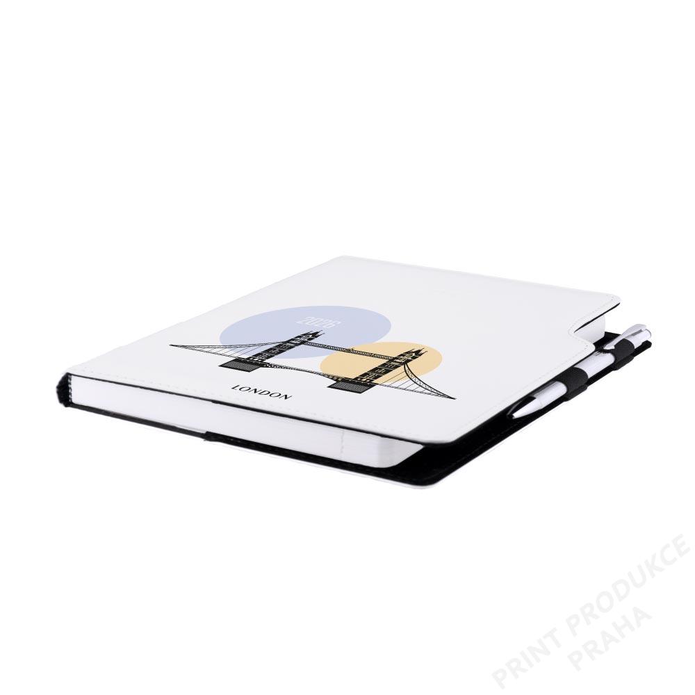 Formát: B5 - Rozměr bloku: 170 x 240 mm (Blok vkládaný do desek diáře) - Rozsah: 144 stran - Vazba: šitá V8 (tkaná nit) - Kalendárium: týdenní české a slovenské jmenné - Jazykové mutace: CZ, SK, EN, DE, RU - Barva bloku: bílá - Barva písma: modrá a červená - Diář obsahuje: kulaté odtrhávací rožky, bílou záložku a propisku - Materiál vnější: pěnová výplň desky potažená hladkou koženkou s natištěnou grafikou - Materiál vnitřní: černý samet - - Obsah kalendária: znamení zvěrokruhu, přehledný kalendář, plánovací kalendář 2026, - roční plánovací kalendář CZ a SK, přehled přiznání a plateb daní CZ a SK, - mezinárodní tel. spojení, CZ/SK křestní jména, časová pásma, - státní a církevní svátky ve světě, vzdálenosti v km EU/CZ/SK, - plánovací kalendář 2027, poznámky, mapy - ČR, SK, Praha, Bratislava. - - -