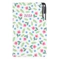Formát: kapesní - Rozměr bloku: 80 x 150 mm (Blok vkládaný do desek diáře) - Rozsah: 140 stran - Vazba: šitá V8 (tkaná nit) - Kalendárium: týdenní české jmenné - Jazykové mutace: CZ, SK, EN, DE, RU - Barva bloku: bílá - Barva písma: modrá a červená - Diář obsahuje: kulaté odtrhávací rožky, bílou záložku a propisku - Materiál vnější: pěnová výplň desky potažená hladkou koženkou s natištěnou grafikou - Materiál vnitřní: černý samet - - Obsah kalendária: znamení zvěrokruhu, přehledný kalendář, - plánovací kalendář 2026, roční plánovací kalendář CZ a SK, - přehled přiznání a plateb daní CZ a SK, mezinárodní tel. spojení, - státní a církevní svátky ve světě, CZ křestní jména, - vzdálenosti v km EU/CZ/SK, plánovací kalendář 2027, - poznámky, časová pásma. - - -