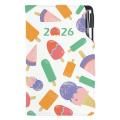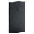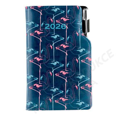 Formát: kapesní - Rozměr bloku: 80 x 150 mm - Rozsah: 140 stran - Vazba: šitá V8 (tkaná nit) - Kalendárium: týdenní slovenské jmenné - Jazykové mutace: SK, CZ, EN, DE, RU - Barva bloku: bílá - Barva písma: modrá a červená - Diář obsahuje: kulaté odtrhávací rožky, bílou záložku a propisku - Materiál vnější: pěnová výplň desky potažená hladkou koženkou s natištěnou grafikou - Materiál vnitřní: černý samet - - Obsah kalendária: znamení zvěrokruhu, přehledný kalendář, - plánovací kalendář 2026, roční plánovací kalendář SK a CZ, - přehled přiznání a plateb daní SK a CZ, mezinárodní tel. spojení, - státní a církevní svátky ve světě, SK křestní jména, - vzdálenosti v km EU/SK/CZ, plánovací kalendář 2027, - poznámky, časová pásma. - - -