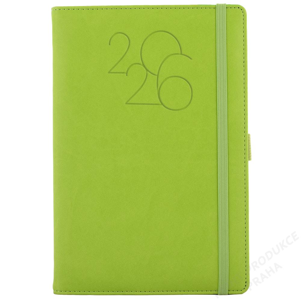 Rozsah: 140 stran - Vazba: šitá V8 (tkaná nit) - Kalendárium: týdenní jmenné CZ/SK na jedné straně + strana na poznámky - Barva bloku: bílá - Barva písma: modrá a červená - Potahový materiál: matná koženka - Diář obsahuje: kulaté odtrhávací rožky, - bílou záložku, poutko na propisku a gumičku na zavírání - - Obsah kalendária: znamení zvěrokruhu, přehledný kalendář, - plánovací kalendář 2026, roční plánovací kalendář CZ a SK, - přehled přiznání a plateb daní CZ a SK, poznámky, - mezinárodní tel. spojení, CZ/SK křestní jména, časová pásma, - státní a církevní svátky ve světě, vzdálenosti v km EU/CZ/SK, - plánovací kalendář 2027, mapy - ČR, SK, Praha, Bratislava. - - Diář je vhodný pro sleporažbu, barevnou ražbu a potisk.