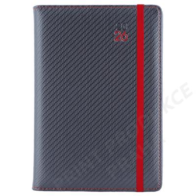 Rozsah: 140 stran - Vazba: šitá V8 (tkaná nit) - Kalendárium: týdenní jmenné CZ/SK na jedné straně + strana na poznámky - Jazyky: CZ, SK, EN, DE, RU - Barva bloku: bílá - Barva písma: modrá a červená - Diář obsahuje: kulaté odtrhávací rožky,bílou záložku, - poutko na propisku a gumičku za zavírání - Materiál: pevné desky potaženy vzorovanou matnou koženkou - - Obsah kalendária: znamení zvěrokruhu, přehledný kalendář, - plánovací kalendář 2026, roční plánovací kalendář CZ a SK, - přehled přiznání a plateb daní CZ a SK, časová pásma, - mezinárodní tel. spojení, CZ/SK křestní jména, poznámky, - státní a církevní svátky ve světě, vzdálenosti v km EU/CZ/SK, - plánovací kalendář 2027, mapy - ČR, SK, Praha, Bratislava. - - Součástí je barevná ražba letopočtu. - Diář je vhodný pro sleporažbu a barevnou ražbu.
