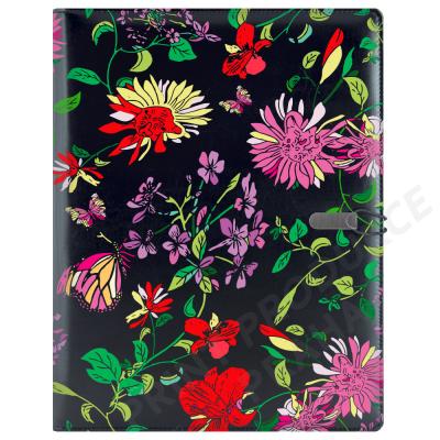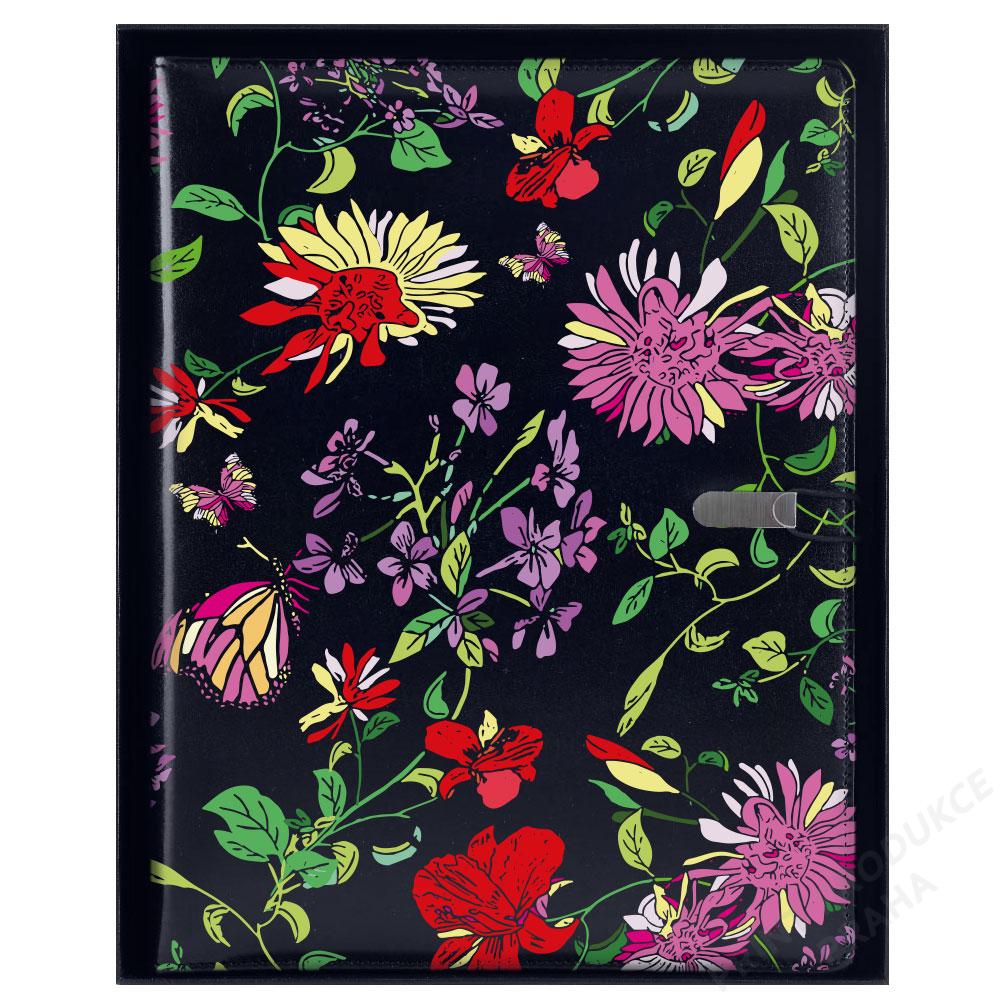 GEP konferenční desky v dárkové krabičce černé - květy s čistým blokem - Tyto desky jsou ideálním pomocníkem k pořizování poznámek. - Jsou vhodné také jako reprezentativní dárek zabalený v luxusní krabičce. - Do desek GEP je možno dokupovat další náhradní bloky. - Jsou vhodné k reklamní ražbě log, k potisku, ke gravírování atd… - Na desky umíme jako jediní na světě i plnobarevnou ražbu. - Jsou vybaveny estetickým zapínáním na gumičku s kovovým štítkem. - Bloky do desek je možno vyrobit na zakázku s grafikou klienta. (od 100 ks) - Propisku můžeme na přání potisknout. - Na zakázku můžeme desky vyrobit i z jiných potahových materiálů a barev. - - - Konferenční desky GEP standardně obsahují: - - Koženkové desky o rozměru 24,5 x 31,5 cm (vnější rozměr) - - čistý A4 s 50 ti stranami - - zapínání na gumičku s kovovým štítkem - - vnitřní přihrádku na dokumenty - - 2 x přihrádku na karty, vizitky aj. - - 2 x poutko na propisku - - luxusní dárkovou krabičku vhodnou k potisku