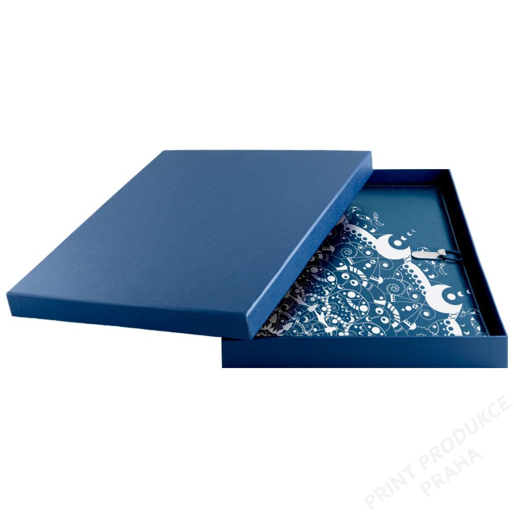 GEP konferenční desky na dokumenty v dárkové krabičce modré - ornament s linkovaným blokem - Tyto desky jsou ideálním pomocníkem k pořizování poznámek. - Jsou vhodné také jako reprezentativní dárek zabalený v luxusní krabičce. - Do desek GEP je možno dokupovat další náhradní bloky. - Jsou vhodné k reklamní ražbě log, k potisku, ke gravírování atd… - Na desky umíme jako jediní na světě i plnobarevnou ražbu. - Jsou vybaveny estetickým zapínáním na gumičku s kovovým štítkem. - Bloky do desek je možno vyrobit na zakázku s grafikou klienta. (od 100 ks) - Propisku můžeme na přání potisknout. - Na zakázku můžeme desky vyrobit i z jiných potahových materiálů a barev. - - - Konferenční desky GEP standardně obsahují: - - Koženkové desky o rozměru 24,5 x 31,5 cm (vnější rozměr) - - linkovaný A4 s 50 ti stranami - - zapínání na gumičku s kovovým štítkem - - vnitřní přihrádku na dokumenty - - 2 x přihrádku na karty, vizitky aj. - - 2 x poutko na propisku - - luxusní dárkovou krabičku vhodnou k potisku