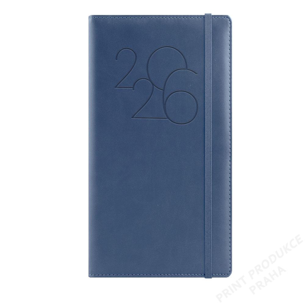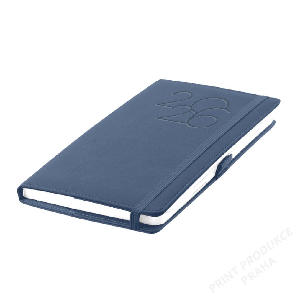 Blok vkládaný do desek diáře - Rozsah: 140 stran - Vazba: šitá V8 (tkaná nit) - Kalendárium: týdenní české jmenné - Jazykové mutace: CZ, SK, EN, DE, RU - Barva bloku: bílá - Barva písma: modrá a červená - Potahový materiál: matná koženka - Diář obsahuje: kulaté odtrhávací rožky, - bílou záložku, poutko na propisku a gumičku na zavírání - - Obsah kalendária: znamení zvěrokruhu, přehledný kalendář, - plánovací kalendář 2026, roční plánovací kalendář CZ a SK, - přehled přiznání a plateb daní CZ a SK, mezinárodní tel. spojení, - státní a církevní svátky ve světě, CZ křestní jména, - vzdálenosti v km EU/CZ/SK, plánovací kalendář 2027, - poznámky, časová pásma. - - Diář je vhodný pro sleporažbu, barevnou ražbu a potisk.