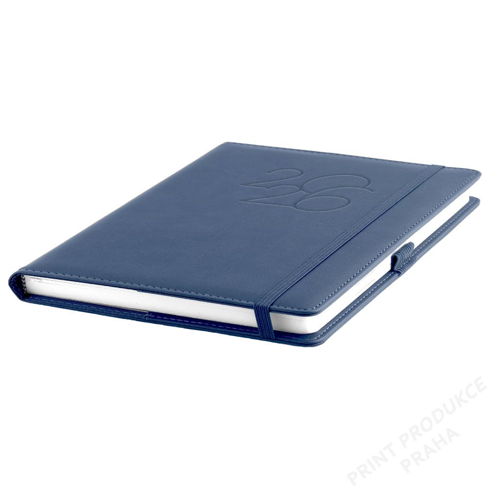 Rozsah: 140 stran - Vazba: šitá V8 (tkaná nit) - Kalendárium: týdenní jmenné CZ/SK na jedné straně + strana na poznámky - Barva bloku: bílá - Barva písma: modrá a červená - Potahový materiál: matná koženka - Diář obsahuje: kulaté odtrhávací rožky, - bílou záložku, poutko na propisku a gumičku na zavírání - - Obsah kalendária: znamení zvěrokruhu, přehledný kalendář, - plánovací kalendář 2026, roční plánovací kalendář CZ a SK, - přehled přiznání a plateb daní CZ a SK, poznámky, - mezinárodní tel. spojení, CZ/SK křestní jména, časová pásma, - státní a církevní svátky ve světě, vzdálenosti v km EU/CZ/SK, - plánovací kalendář 2027, mapy - ČR, SK, Praha, Bratislava. - - Diář je vhodný pro sleporažbu, barevnou ražbu a potisk.