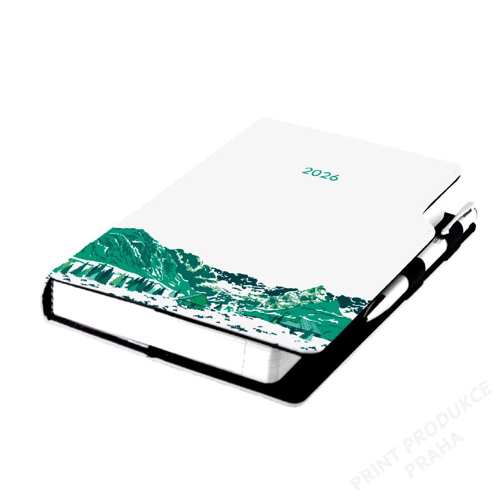 Diář DESIGN denní A5 2026 český - bílá - Hory