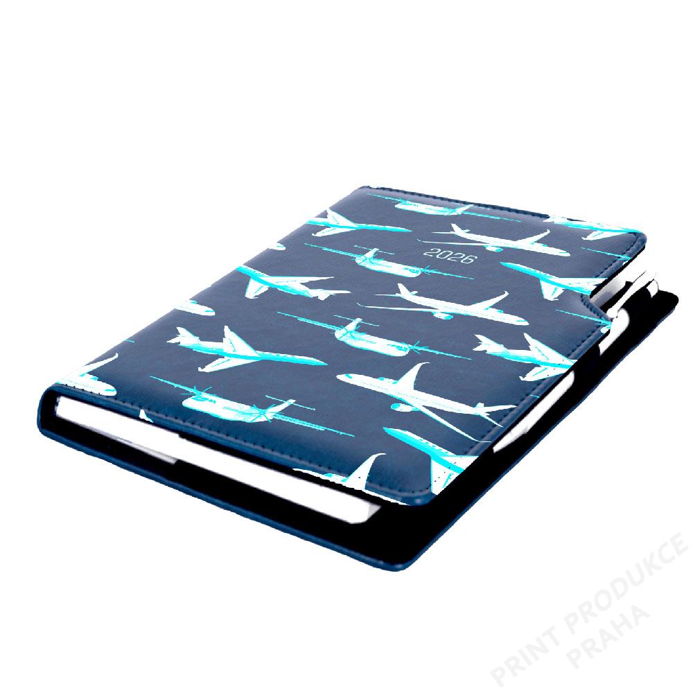 Diář DESIGN denní B6 2026 český - modrá - Letadla