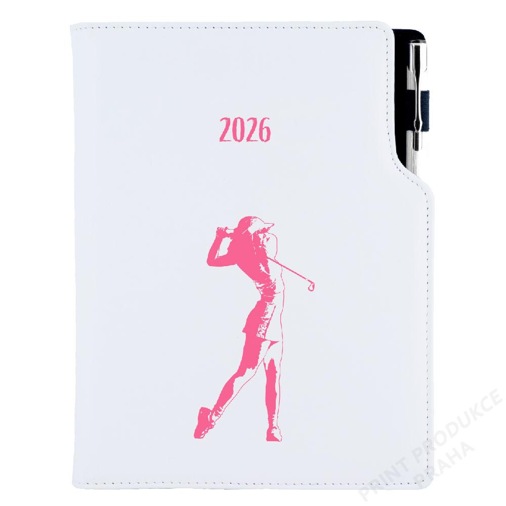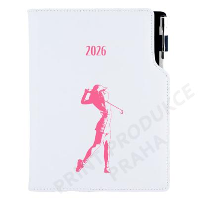 Diář obsahuje: kulaté odtrhávací rožky, bílou záložku a propisku