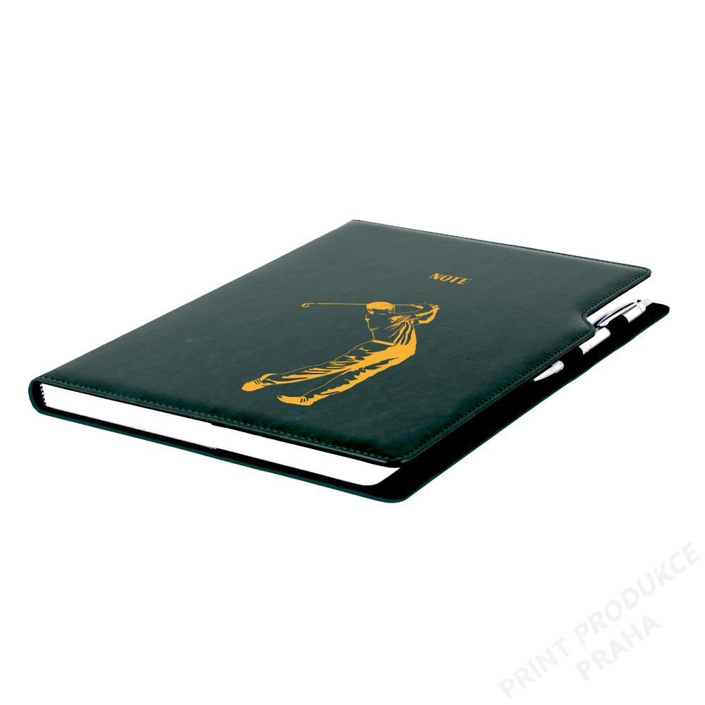 Notes - zápisník DESIGN A4 nelinkovaný - zelená - Golf muž