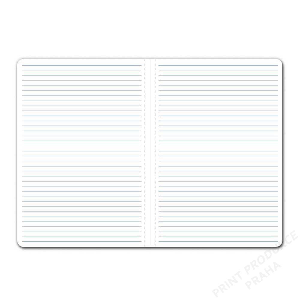 Formát: A4 - Rozměr: 210 x 293 mm - Barva bloku: bílá - Záložka: bílá - Papír: linkovaný s perforací - Počet stran: 144 - Vazba: šitá V8 (tkaná niť) - Materiál vnější: pěnová výplň desky potažená hladkou koženkou s natištěnou grafikou - Materiál vnitřní: černý samet - - Součástí notesu je poutko na propisku a kovová propiska.