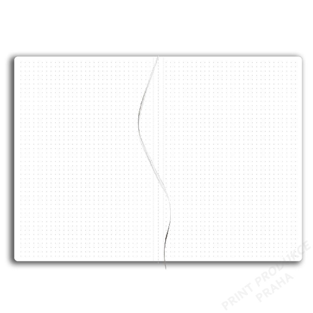 Formát: B5 - Rozměr: 170 x 240 mm - Barva bloku: bílá - Záložka: bílá - Papír: tečkovaný s perforací - Počet stran: 144 - Vazba: šitá V8 (tkaná niť) - Materiál vnější: pěnová výplň desky potažená hladkou koženkou s natištěnou grafikou - Materiál vnitřní: černý samet - - Součástí notesu je poutko na propisku a kovová propiska.