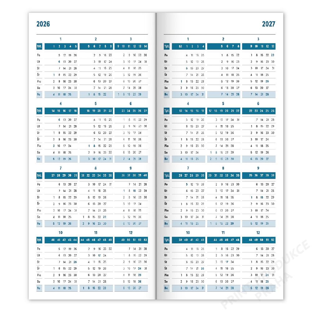 Rozměr: 8 x 18 cm - Formát: kapesní - Počet stran: 32 - Kalendárium: slovenské měsíční - Barva papíru: bílá - Materiál desek: lamino - Vazba: šitá V1 - - Diář obsahuje: přehledný kalendář 2026 a 2027, - abecední seznam slovenských jmen, - plánovací kalendář s měsíčním kalendáriem. - -