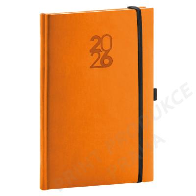 Rozměr: 15 x 21 cm - Formát: A5 - Kalendárium: 6jazyčné týdenní (CZ, SK, EN, DE, HU, RU) - Počet stran: 144 stran - Potahový materiál: hladká matná koženka - Vazba: tuhá knižní - Barva bloku: bílá - - Diář obsahuje: místo pro osobní údaje, měsíční plánování 2026 a 2027, - roční plánování 2026 a 2027, pracovní plánovací kalendář, mapa ČR a SK, - svátky ČR/ SK + mezinárodní svátky, rozšířený seznam českých jmen. - - Součástí je ražba roku, gumička na zavření a poutko na pero. - Vhodný pro ražbu, ražbu přes folii, barevnou ražbu a potisk.