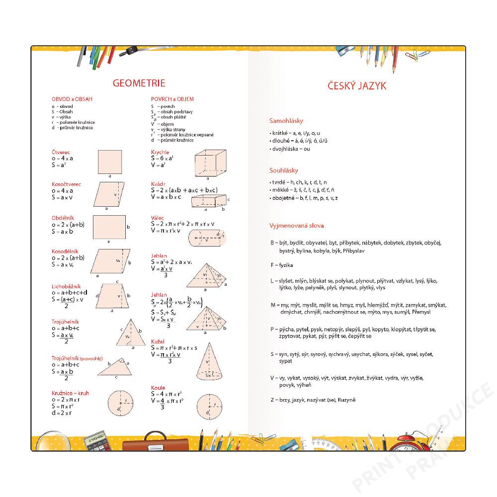 jmenné - Počet stran: 64 - Barva bloku: bílá - Vazba: sešitová vazba - Potahový materiál: tvrdý papír - - Obsahuje: rozvrh hodin, pravítko, adresář, - jízdní řád, známky, přehled prázdnin. - - Užitečné informace z předmětů matematika, chemie a český jazyk.