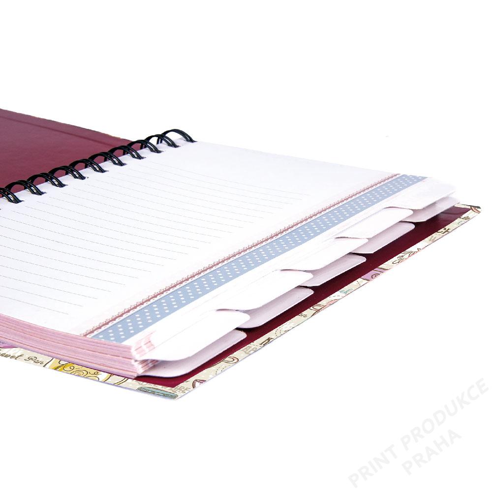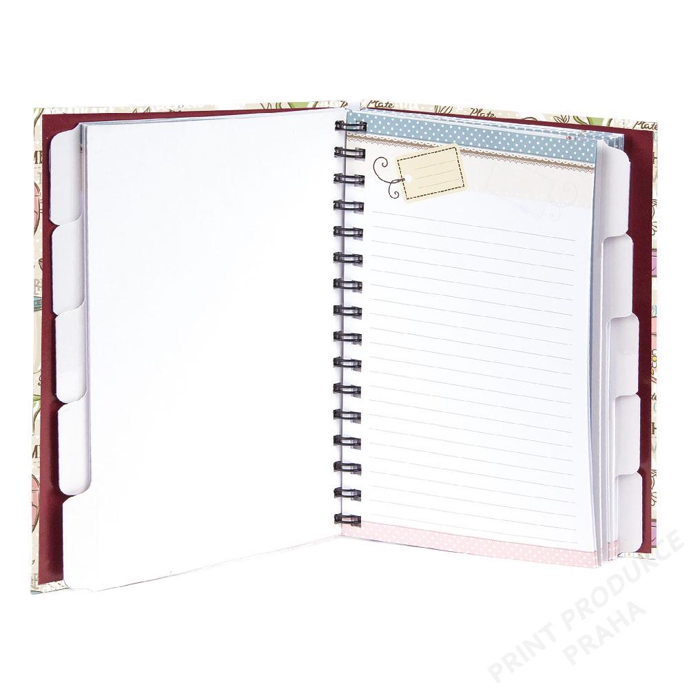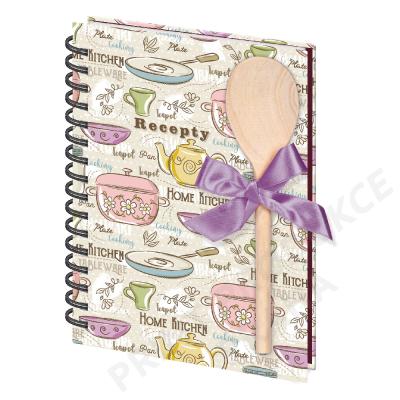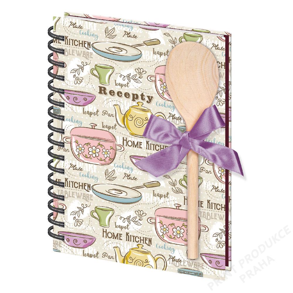 Papír: linkovaný - Barva bloku: bílá - Vazba: kroužková vazba, pevné desky, mašlí připrevněná vařečka