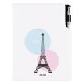 Formát: B5 - Rozměr: 170 x 240 mm - Potahový materiál: lesklá strukturovaná koženka - Vnitřní materiál: černý samet - Barva bloku: bílá - Záložka: bílá - Papír: nelinkovaný s perforací - Počet stran: 144 - Vazba: šitá V8 (tkaná niť) - Součástí notesu je propiska